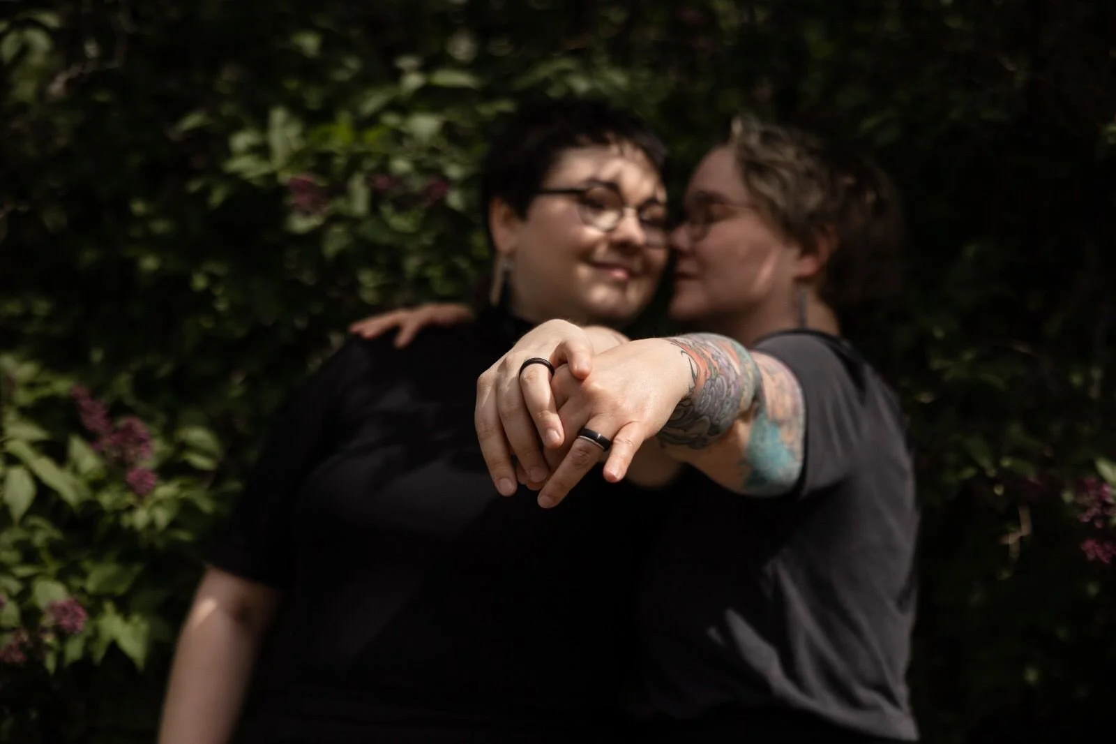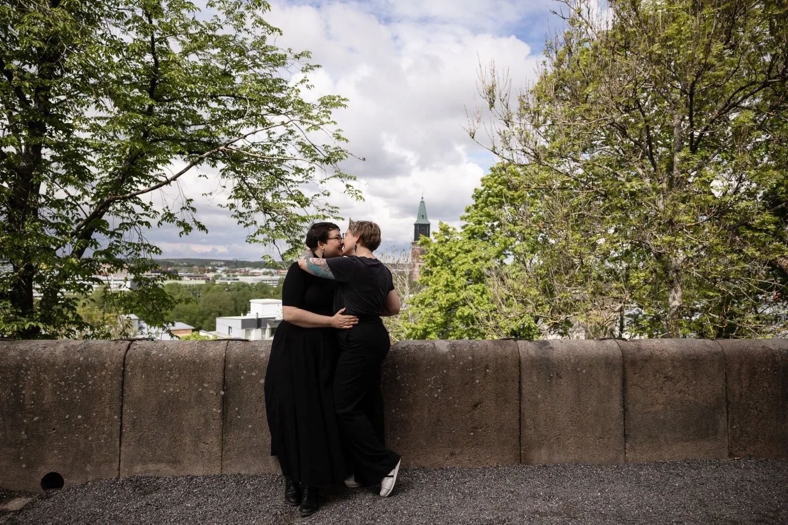 Me, Tinksu ja Sonja, olemme pyörineet hääskenessä ja sen liepeillä vuosia töidemme vuoksi. Sonjan kuvausasiakkaiksi tulee vuosi vuodelta enemmän samansukupuolisia tai queerpareja. Keskusteluissa, pienissä sivulauseissa, nämä parit kertovat kohtaamistaan mikroaggressioista, väärinsukupuolittamisesta tai tilanteista, joissa heidät on tehty näkymättömiksi. Nämä tarinat ovat meillekin tuttuja, tosin toisista konteksteista. Me myötäelämme näissä kokemuksissa. Olemme surullisia heidän puolestaan ja haluamme muutosta tarina tarinalta kovemmin.